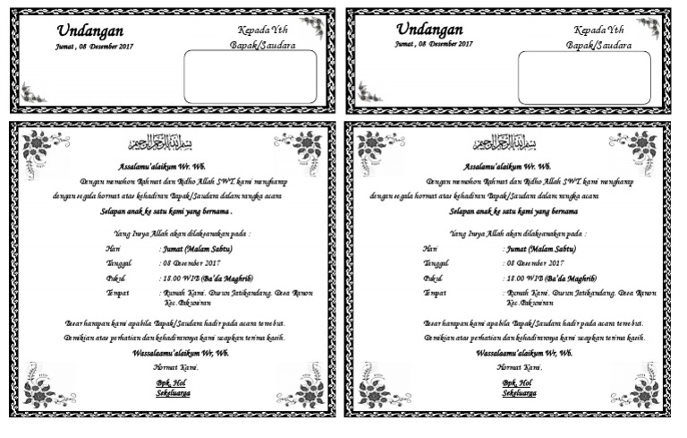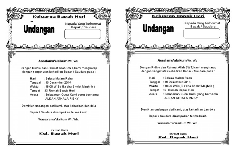 99 cahaya di langit eropa. Kami berharap dengan kamu bagikan blog keywords ini bisa menghibur anda. Contoh kartu ucapan aqiqah bayi pada berkat (kotak nasi) undangan maulid nabi muhammad. Feb 16, 2019 · contoh undangan selapanan bayi word lesmusikterbaik blogspot 2017 undangan microsoft word doc htmldownload undangan microsoft word berikut ini kami akan share beberapa contoh format atau file undangan dari berbagai macam acara seperti walimatul ursy walimatul khitan selapanan tahlil 40 hari 100 hari pendak 1 dan 2 seribu hari haul walimatul. Undangan selapan bayi versi 2.docx.